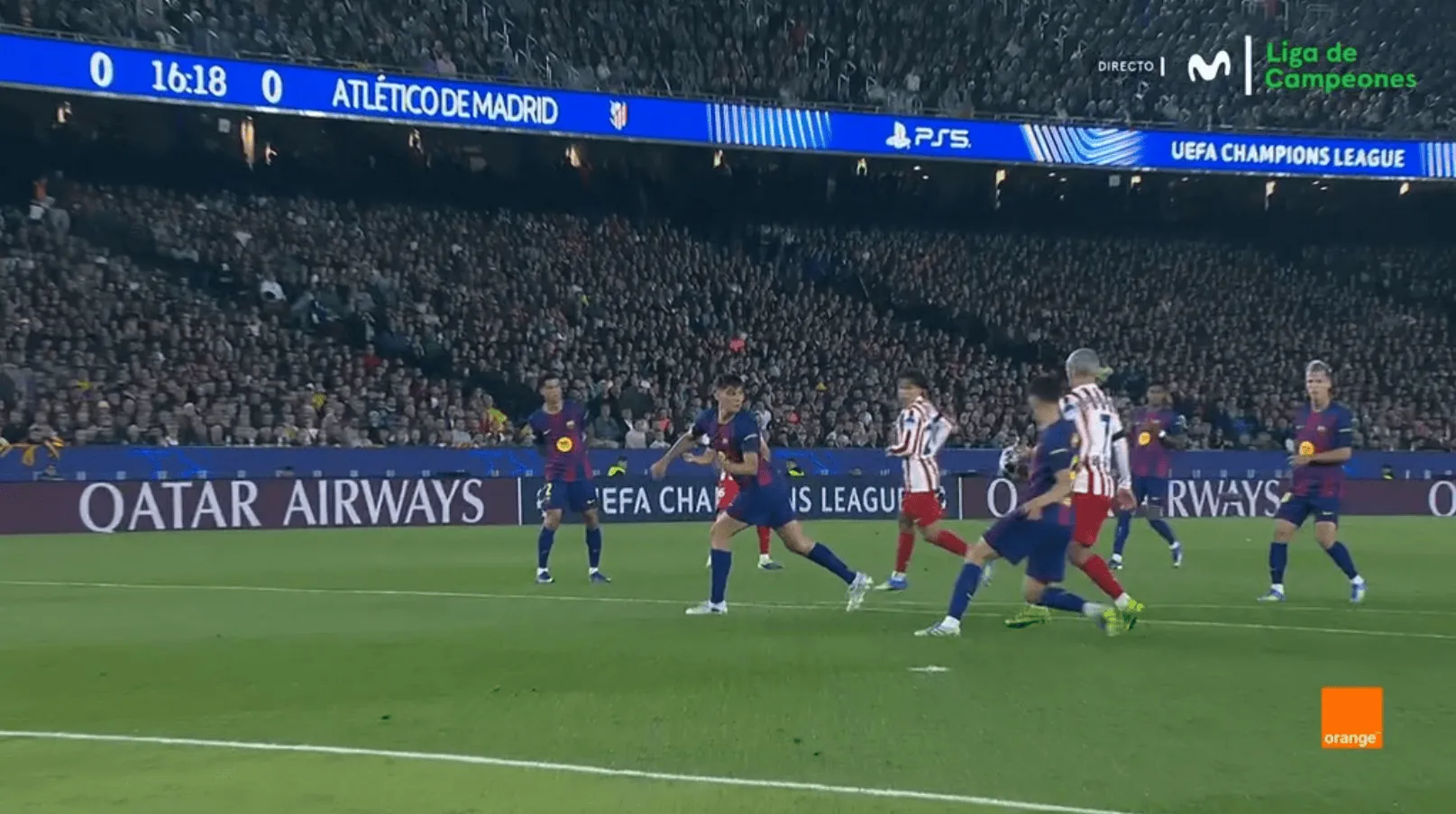 第16分钟,场上出现首次争议。马竞一次传中在禁区内弹到巴萨后卫库巴西手上,当时他正与格列兹曼争抢。主裁未作判罚,VAR也未介入。裁判组认为这是手球处于自然位置且为无意触球,不构成犯规。判罚分析平台Archivo VAR也表示,库巴西在皮球弹来时手臂贴近身体,属于自然位置。